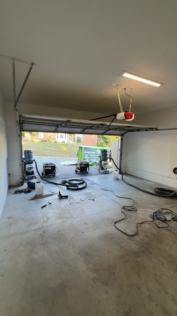 By the end of the day, the transformation was dramatic. What was once a cracked, uneven surface now looked like a brand-new garage, clean, bright, and professional.