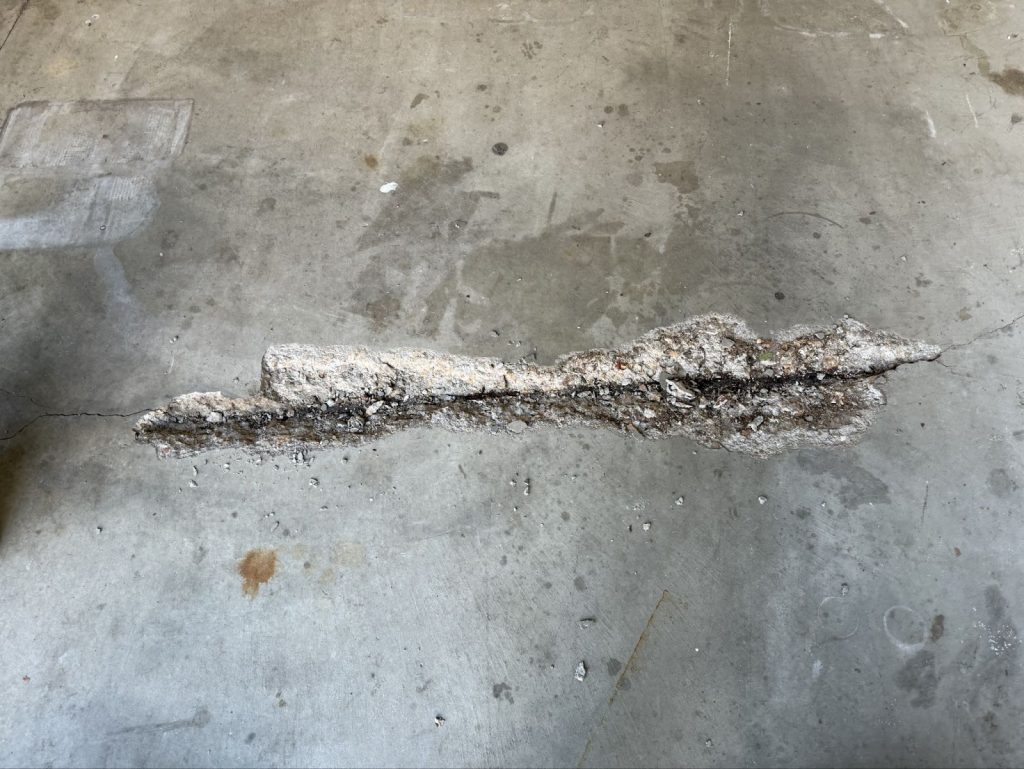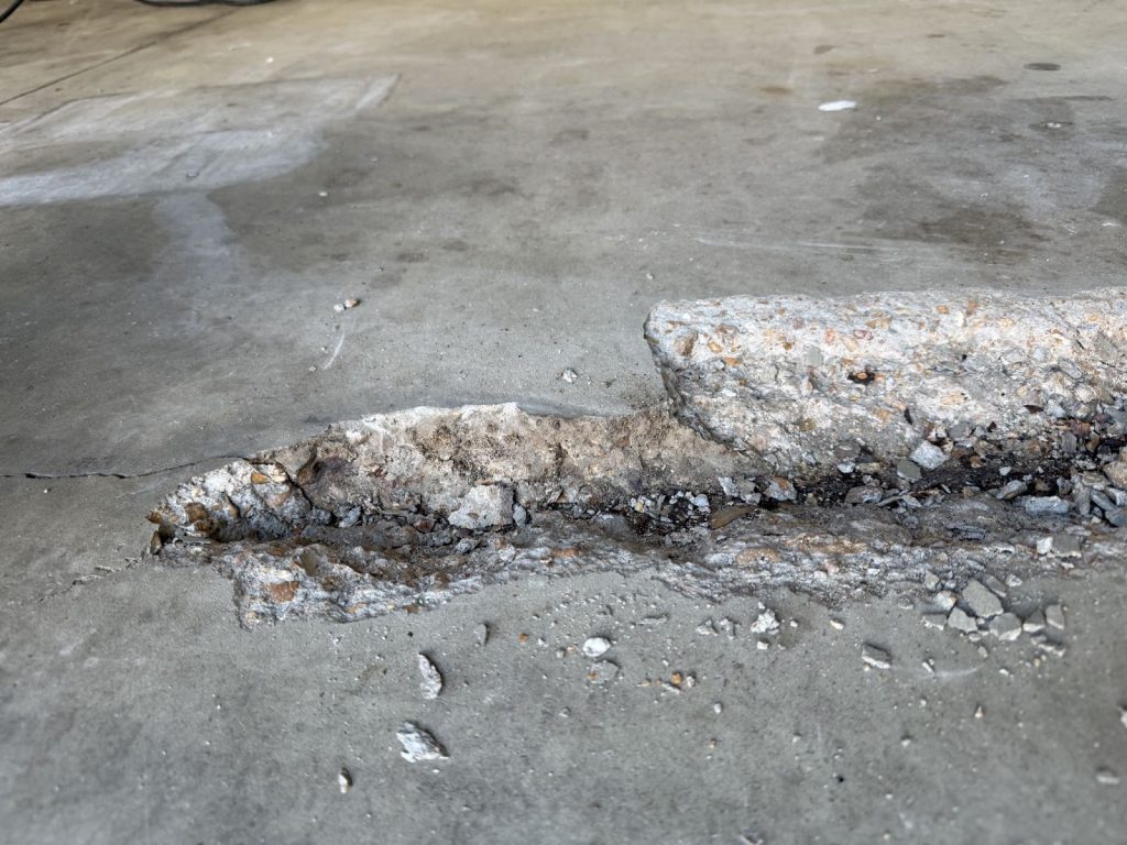 The floor had seen better days. Years of use, salt, and moisture had caused parts of the concrete to erode and break away, leaving uneven patches and cracks throughout the surface.
