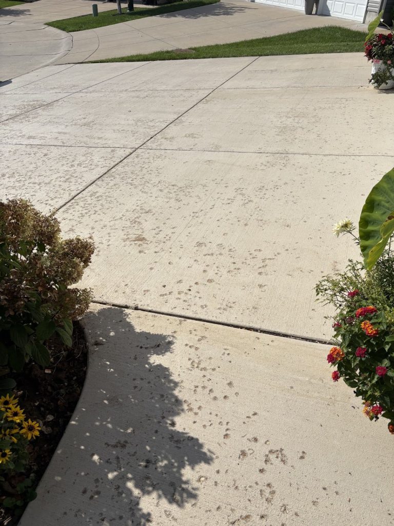 “It looked like the concrete had been eaten alive,” the homeowner said. “There were pits everywhere. We thought we’d have to replace the whole driveway.”