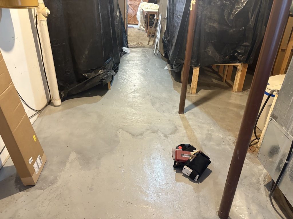 The homeowners had hired someone previously to coat their basement floor, hoping to create a clean, finished space they could enjoy. Unfortunately, what they got instead was a textbook example of why concrete coatings require real expertise.